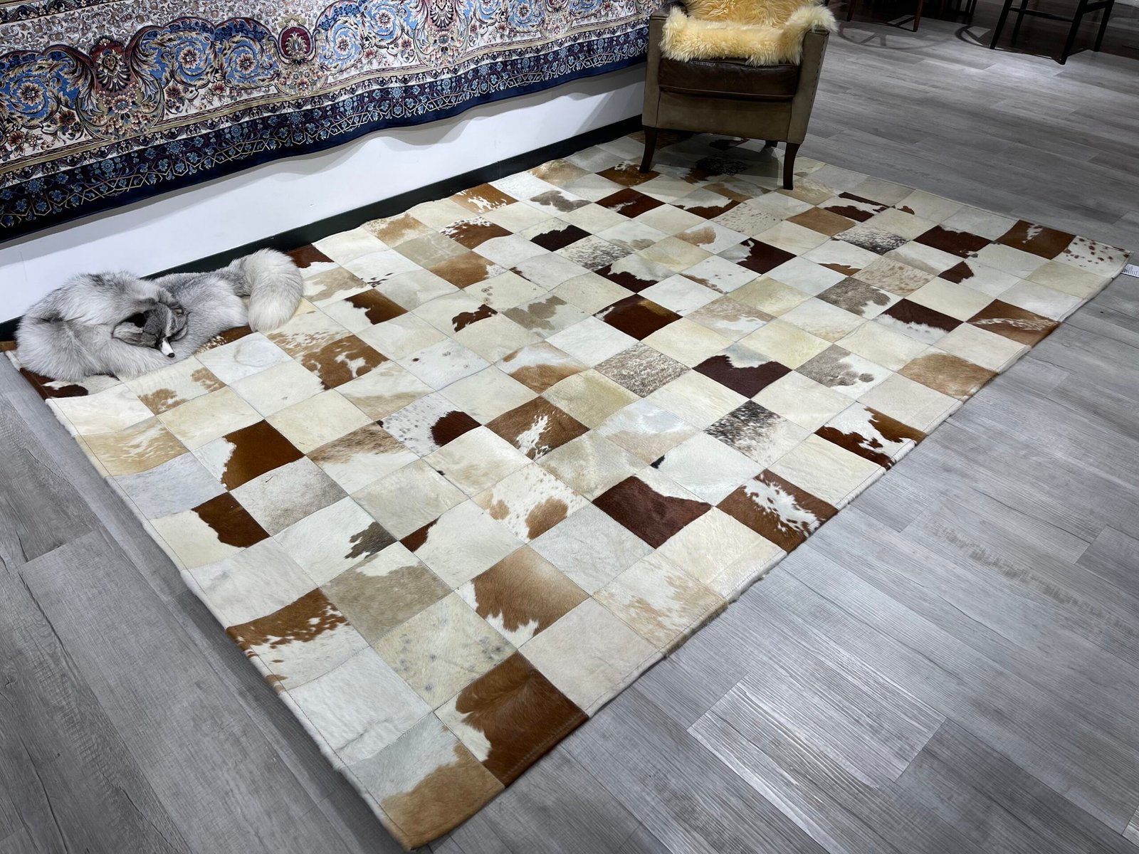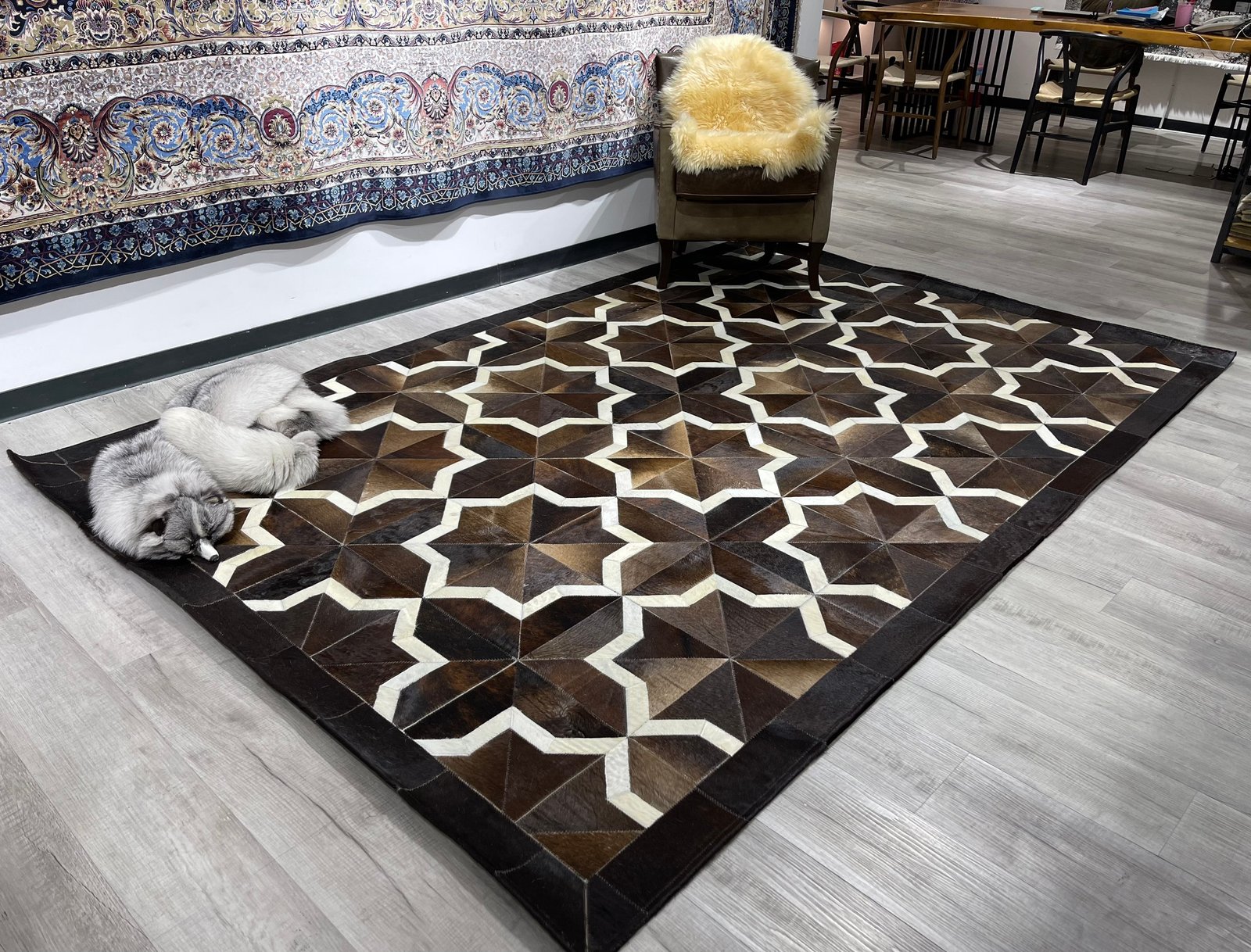 – Chất liệu: DA BÒ MIẾN ĐIỆN nhập khẩu – Kích thước : 200x300cm. – Độ dày: 8mm. – Trọng lượng: 1.5kg/m2, dệt thủ công bằng tay với da bò miếng khổ 20cm